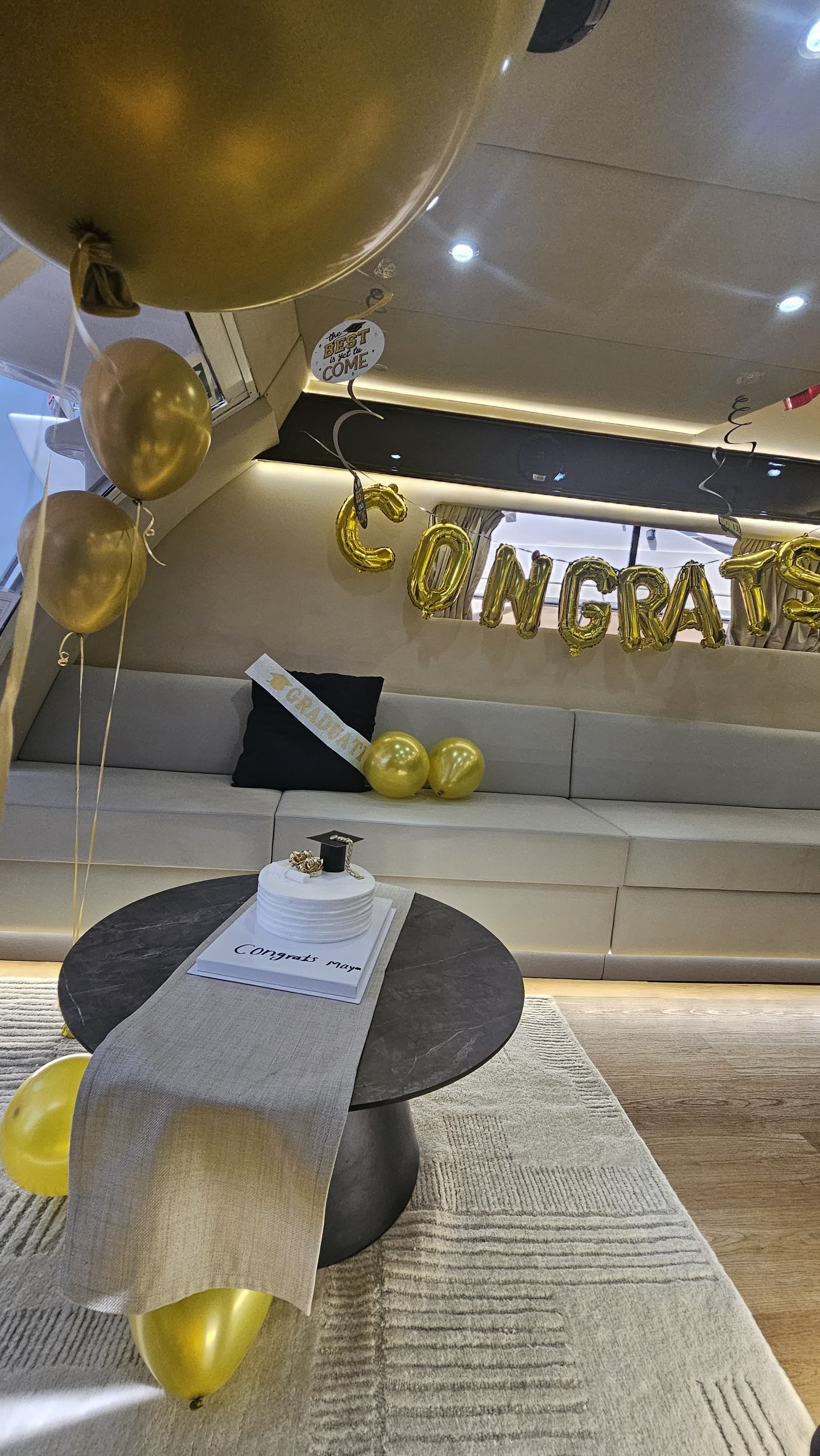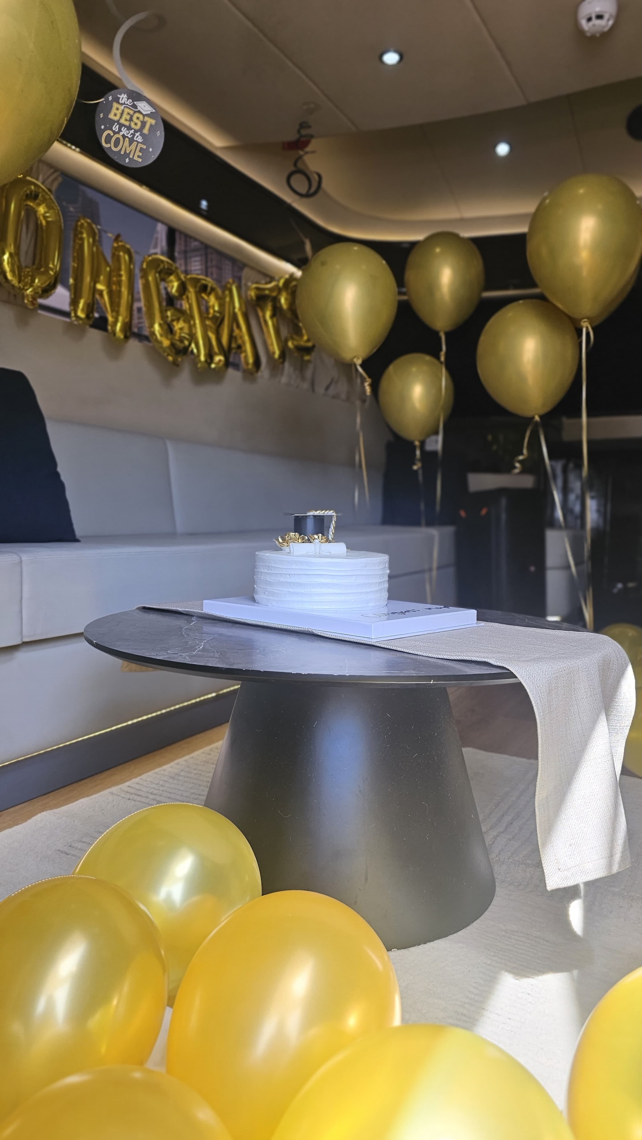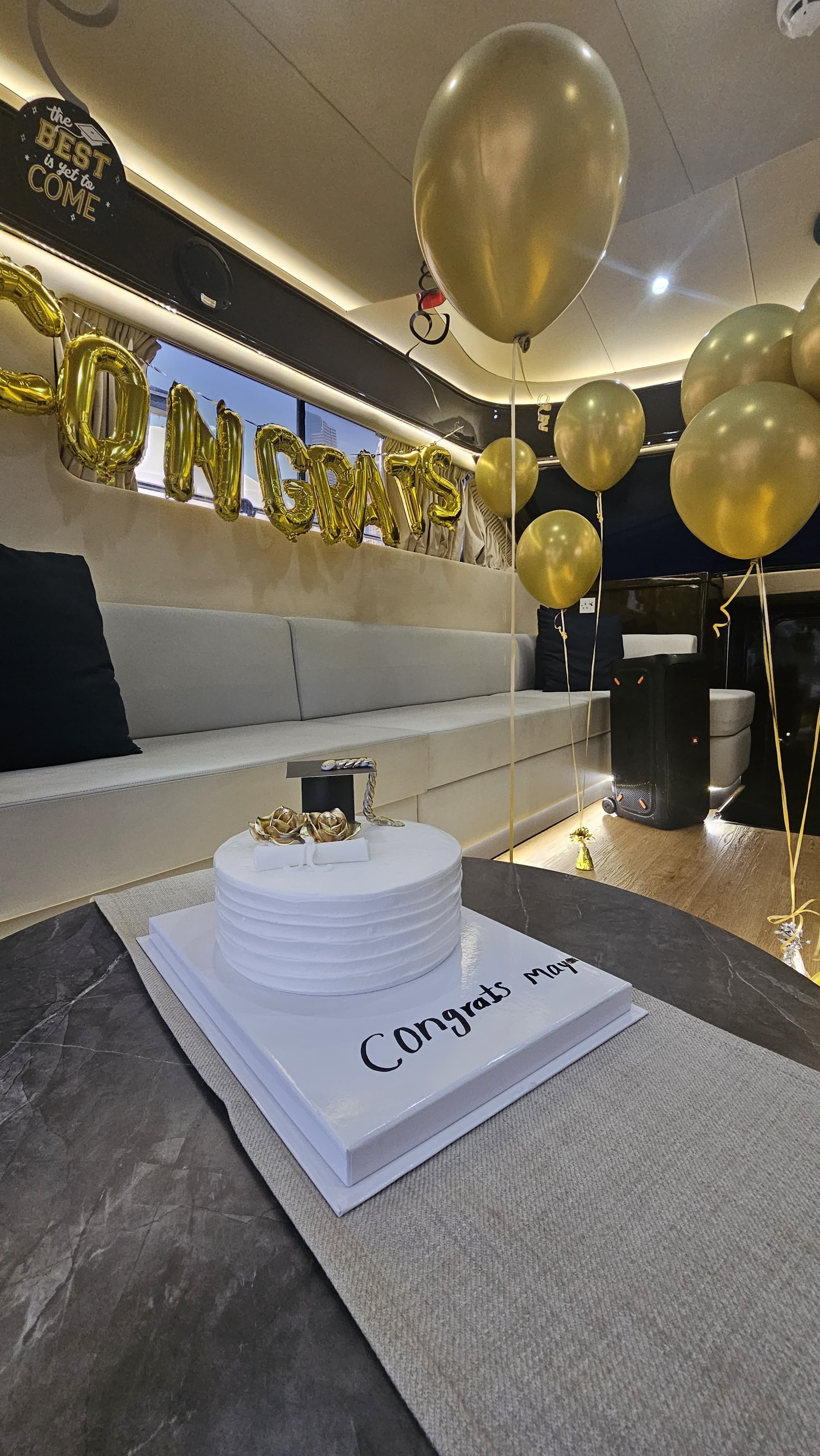 Whether you're tossing your cap at sunset or dancing under the skyline, this experience is perfect for graduates looking to make memories with friends and family. A friendly crew is onboard to assist you every step of the way, ensuring a safe, fun, and premium journey on the water.