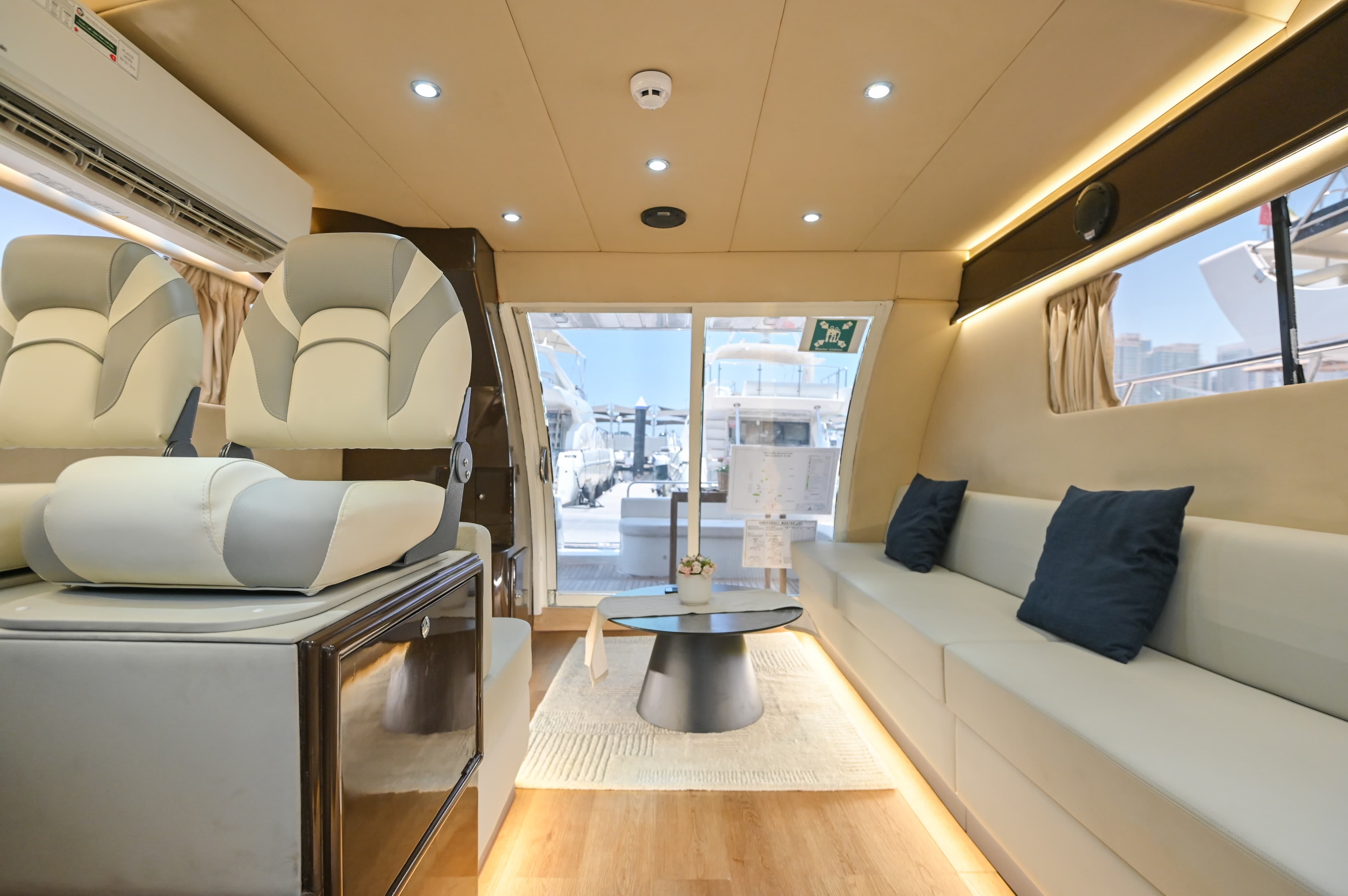Embark on an unforgettable journey through the sparkling waters of Dubai aboard your own private yacht. Witness breathtaking sunset views against the iconic backdrop of Dubai's skyline, cruising past landmarks like the Palm Jumeirah and Burj Al Arab. Indulge in luxury, relaxation, and unparalleled beauty on this exclusive 2-hour yacht tour."