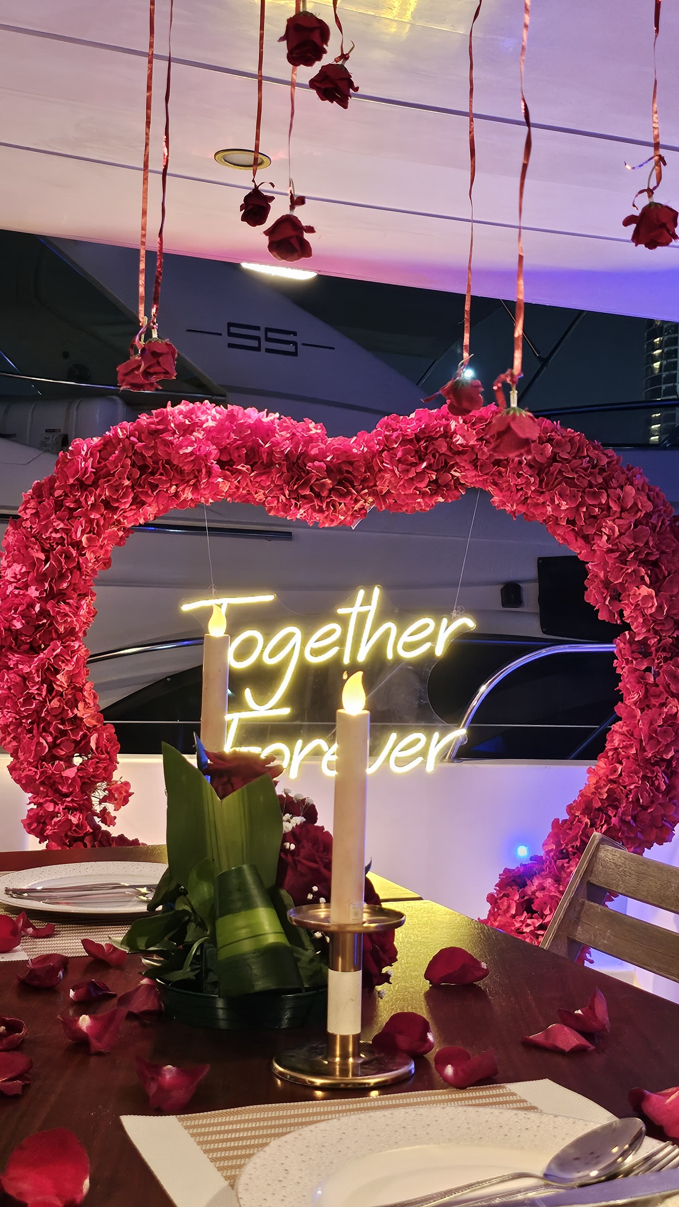Enjoy complete privacy, soft music, and elegant Valentine’s décor as you cruise past Dubai Marina, Ain Dubai, and JBR. Whether you’re planning a romantic surprise, a proposal, or a special evening together, this experience is designed to create lasting memories on the water.